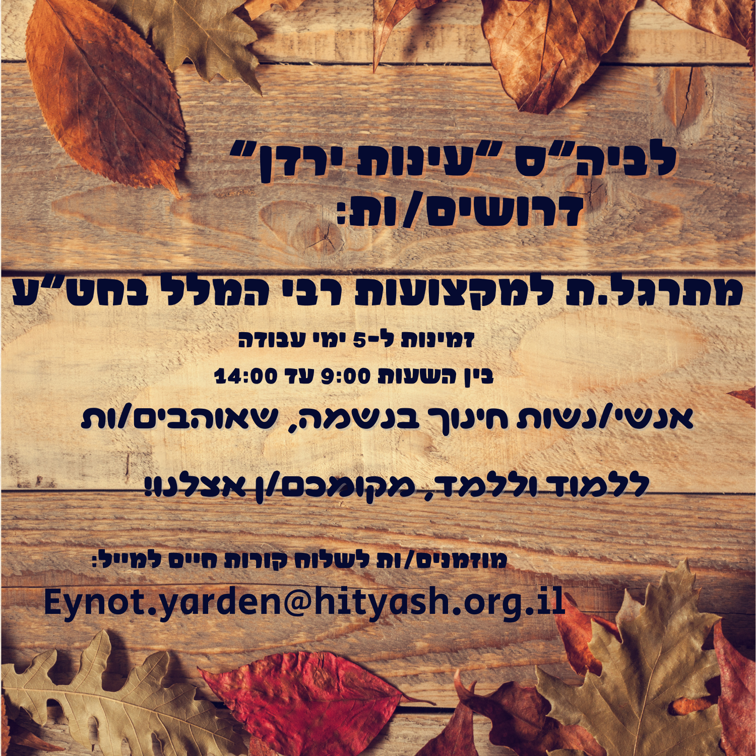 •משרה בהיקף 50% (3 ימים בשבוע)